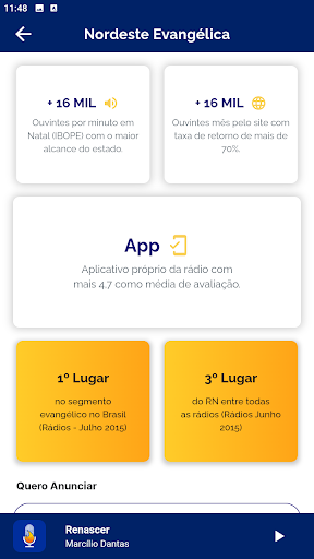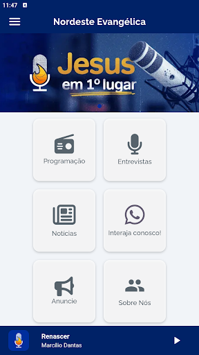 A Rádio Nordeste Evangélica te acompanha em qualquer lugar que você esteja. Com o aplicativo, você pode ouvir a programação completa, acessar as redes sociais e o site da emissora, além de conversar com os locutores que estão no estúdio pelo link do WhatsApp. É simples, interativo e gratuito!
